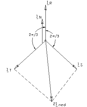 - sistemul de tensiuni este practic simetric. In aceste conditii particulare diagrama fazoriala a curentilor ,respectiv curentul pe conductorul de nul are expresia :